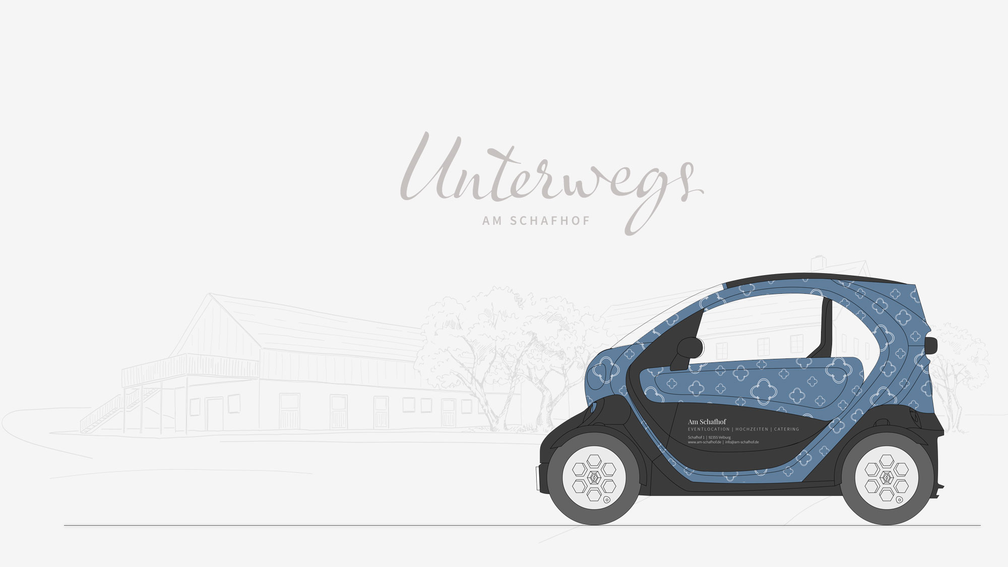 Schafe gibt es jetzt keine mehr am Schafhof, dafür eine mit viel Liebe renovierte Veranstaltungslocation in einer traumhaften Umgebung. Wir haben ein Gestaltungskonzept erarbeitet, das der jungen, modern geführten Location mit historischen Wurzeln gerecht wird und die potentiellen Kunden – insbesondere im Hochzeitssektor – anspricht.